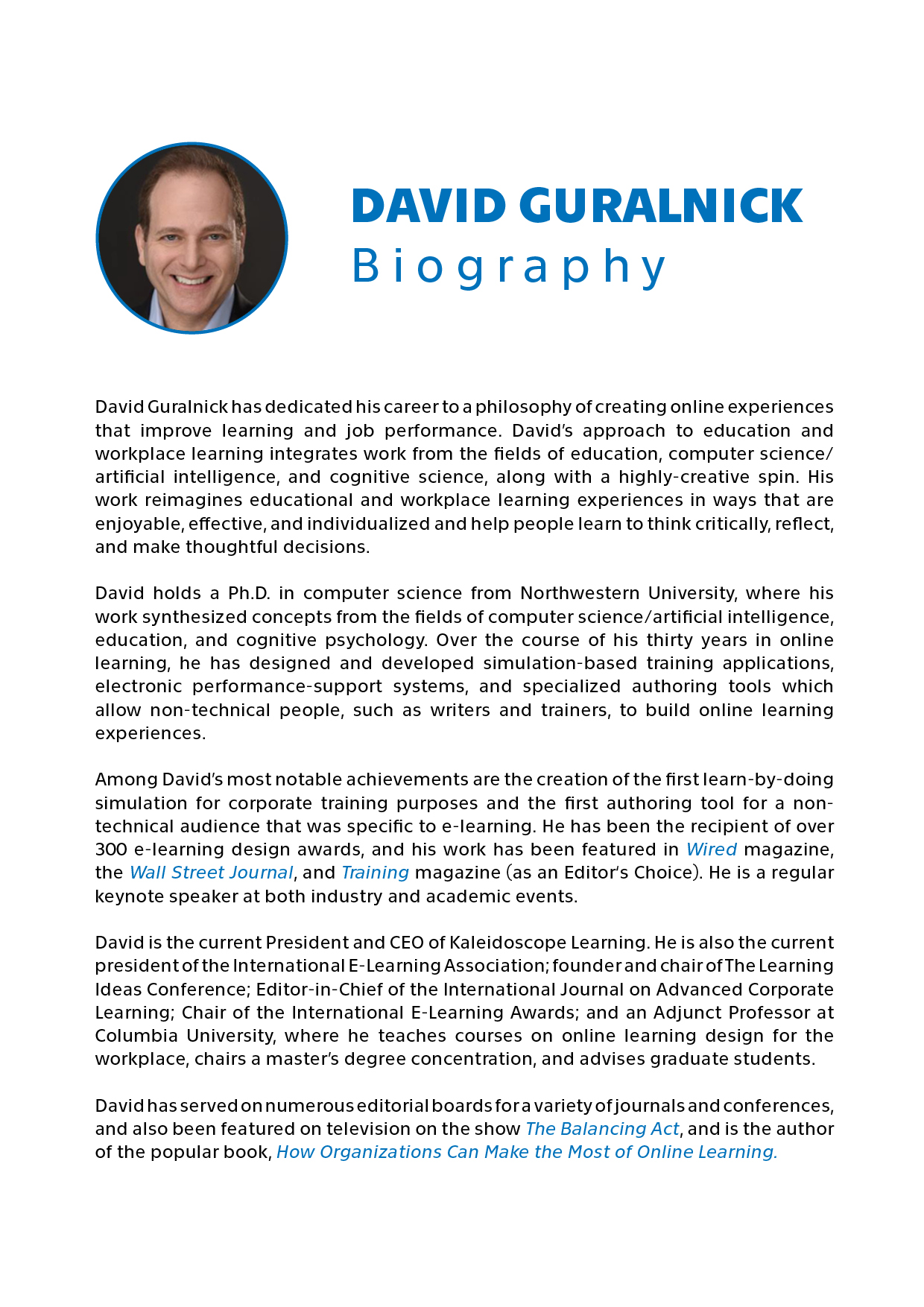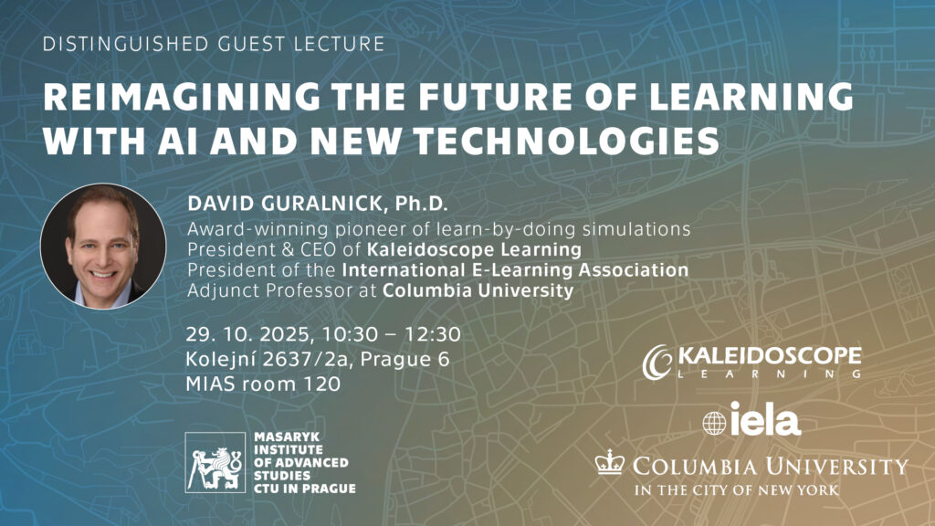 Masarykův ústav vyšších studií pořádá ve středu 29. října 2025 od 10:30 přednášku Davida Guralnicka, průkopníka „learn-by-doing“ simulací a jednoho z nejvýraznějších inovátorů v oblasti online vzdělávání. Guralnick je CEO společnosti Kaleidoscope Learning, prezident International E-Learning Association, zakladatel a předseda konference The Learning Ideas a externí profesor na Columbia University Teachers College. Během své více než třicetileté kariéry navrhl řadu inovací, včetně prvních firemních simulačních tréninků založených na učení praxí a autorských nástrojů, které umožnily netechnickým tvůrcům vytvářet kvalitní e-learning. Za své projekty získal přes 300 ocenění a jeho práci publikovala média jako Wired či The Wall Street Journal.