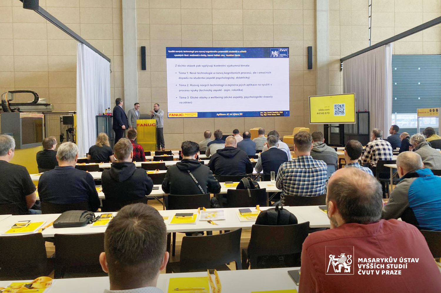 Na letošním Akademickém fóru společnosti FANUC, které se 25. listopadu 2025 konalo v pražském sídle firmy a bylo věnováno inovacím v automatizaci a robotice, představili odborníci z Masarykova ústavu vyšších studií ČVUT svůj výzkum aplikace umělé inteligence ve výuce robotických systémů. Doc. David Vaněček, doc. Martin Kursch a dr. Kuna zde přednesli příspěvek „Aplikace AI ve výuce robotických systémů“, který vychází z aktivit nově zahájeného projektu INTER-EXCELLENCE.