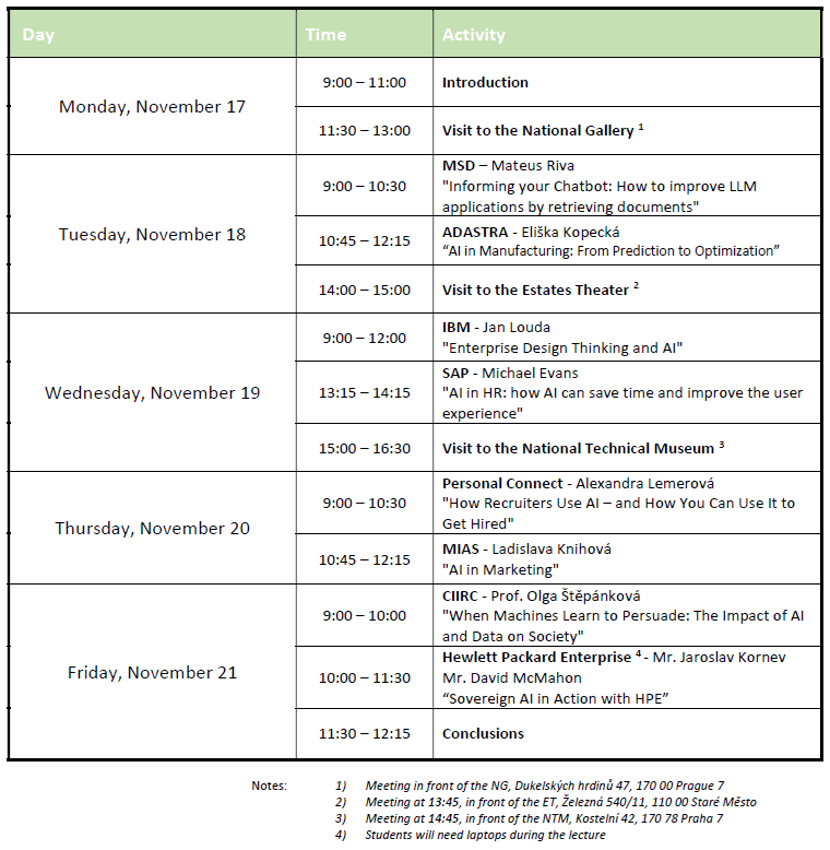 This course was designed to introduce its participants to the most common security threats that are associated with the use of modern technologies and the sectors that are most affected by them. In addition to the theoretical lectures, the course was enriched with the lectures of company representatives who demonstrated possible security risks, their identification and methods leading to their elimination in real cases. Students thus had an opportunity to become familiar with the issue of cognitive warfare (company DefSec), they found out what challenges truck manufacturers have to face (company Renault Trucks), what was the contribution of space industry to the security of Europe (company RHEA Group) and what dilemmas autonomous car manufacturers have to deal with (company Valeo). The last day of the course was mostly dedicated to a cyber security game (company M-COM), that rised the participants´ awareness of the risks and security issues of modern computerized systems.